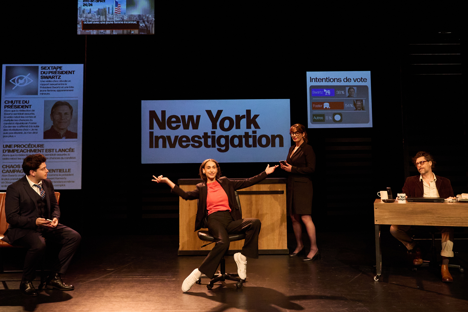 Les six acteurs donnent vie à une vingtaine de personnages… Désinformation, deepfakes, théories du complot, polarisation des idées, lobbying, manipulation de masse… À l’ère de la post-vérité, la petite cellule du New York Investigation tente de résister et d’informer des lecteurs qui ne leur font plus confiance… Un job facile donc, qui pourrait presque les rendre heureux si leur vie personnelle n’était pas tout aussi chaotique.