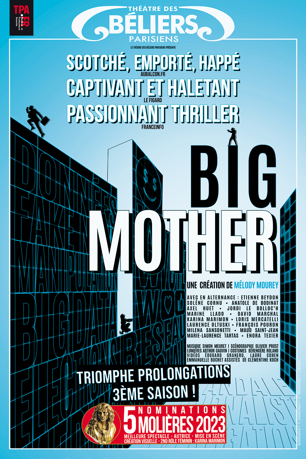 Quelle réussite! Et quelle énergie! Sur tous les plans. De l’écriture à la mise en scène jusqu’au jeu des acteurs. Depuis que j ai vu Big Mother je recommande la pièce à mes amis.