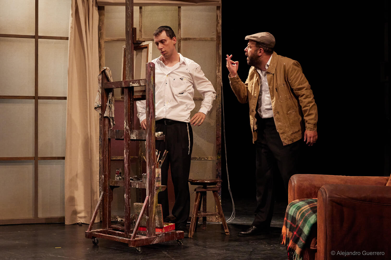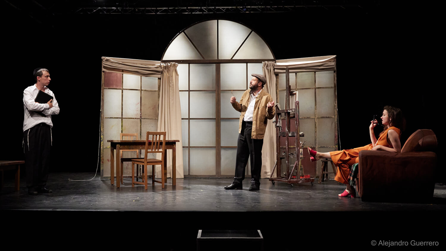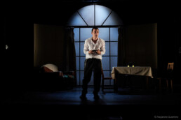 J’ai découvert cette pièce grâce à une autre jouée actuellement à Avignon et dans laquelle on retrouve Stéphanie Caillol et Guillaume Bouchède. Je suis partie à l’inconnue juste avec les informations du théatre. J’entre dans la salle et je découvre un décor minimaliste mais qui me parle. Puis, Asher Lev entre lui en scène et là, je suis absorbée par son histoire.