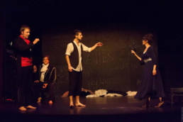 Bourré de rebondissements, d’intrigues à tiroirs et de clins d’œil historiques ou littéraires, ce spectacle est une expérience en soi. Un passionnant récit qui commence avec la disparition de deux femmes dans le désert algérien, se déplace dans les Ardennes, puis se propulse au Québec, à Avignon ou au Palais Royal sous la monarchie de Juillet ! Une enquête dans le temps et l’espace, brillamment mené par cinq comédiens aux pieds nus, avec un tableau noir en guise de décor.