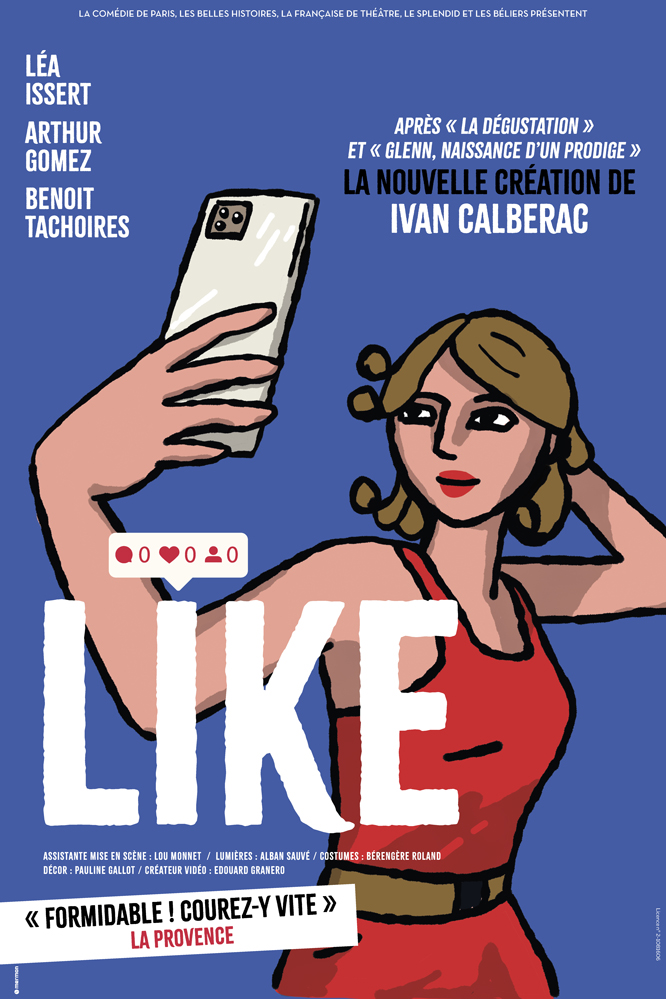 Signée Ivan Calbérac – Venise n’est pas en Italie, La dégustation -, magnifique arpenteur des relations hommes-femmes, Like est une pièce irrésistible de drôlerie et d’émotion. Servie par un trio d’interprètes d’une justesse confondante. Un moment de théâtre vif et moral jamais moralisateur, où l’on ne juge personne, mis en scène au cordeau, et placé (vous verrez comment à la fin) sous l’égide de Montesquieu. Comme c’est formidable de voir une pièce divertissante, intelligente et tenue par une écriture exigeante ! Courez-y vite et Likez ensuite votre satisfaction de spectateur. Jean-Rémi BARLAND • Lire l’article en entier