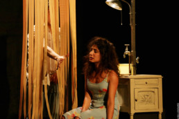 Pour sa première mise en scène, Régis Vallée fait preuve d’une vraie maturité, dirigeant dans une belle énergie et avec du rythme, un trio de comédiens formidables autour d’un procédé scénique simple mais très bien utilisé fait de fils suspendus et de caisses.