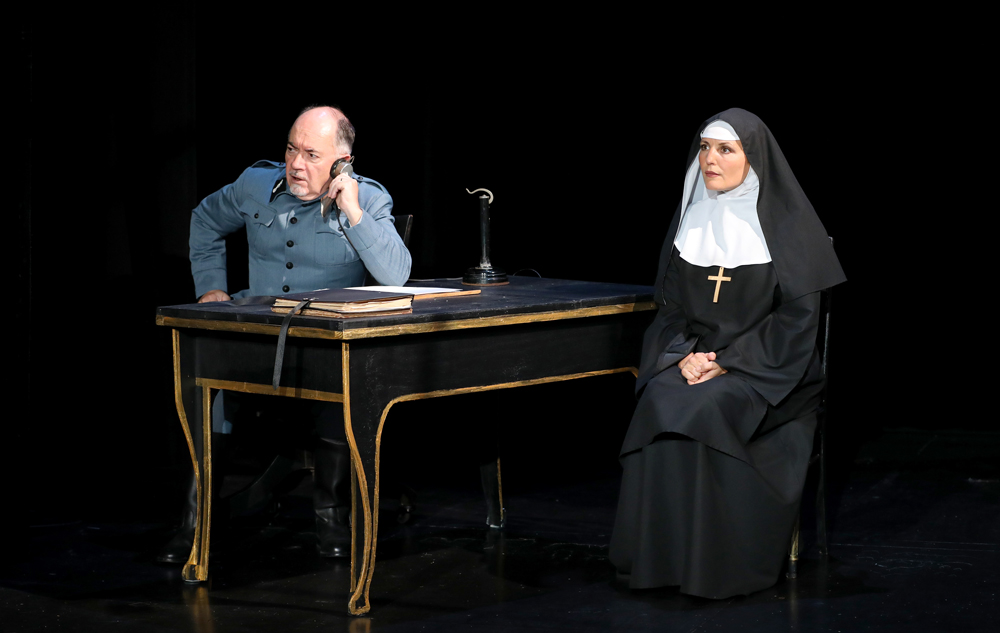 Le destin de la célèbre espionne néerlandaise accusée d’intelligence avec l’ennemi est superbement porté sur scène par Ariane Mourier, en femme espiègle et fière s’effondrant peu à peu face à l’interrogatoire du capitaine Bouchardon, petit homme aux bottes cirées (excellent Olivier Claverie). Des flash-back ingénieux permettent de remonter sa vie remplie d’amants, de splendides robes Belle Époque et de drôlerie, jusqu’au dénouement inéluctable. L’espionne est érigée en héroïne tragique et féministe, dont le seul tort était de trop aimer.
