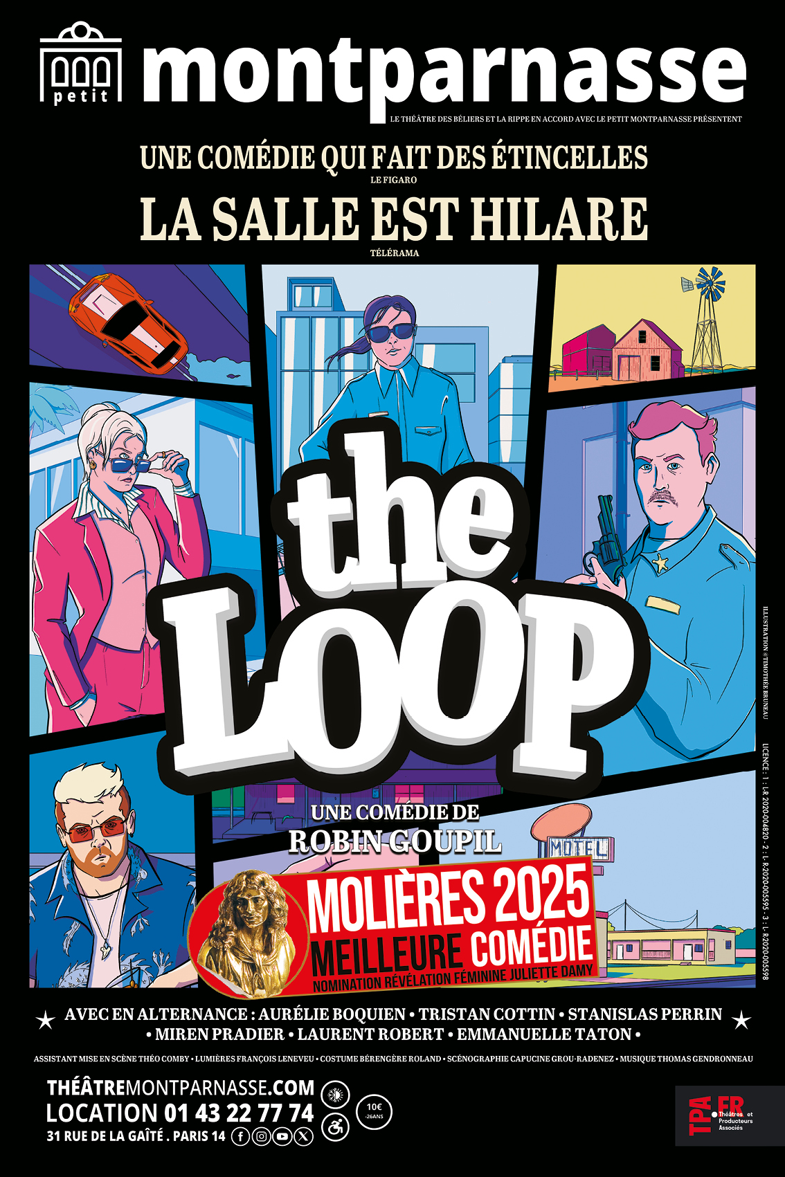 La mise en scène de Robin GOUPIL est bourré d’inventivité. Grâce à un rythme effréné, au comique de répétition, à des gags savamment orchestrés, la pièce ne laisse aucun répit au public. L’hilarité s’intensifie crescendo au fil des versions de plus en plus absurdes et loufoques. Avec son écriture acérée et sa mise en scène brillante, « The Loop » nous offre un spectacle qui flirte avec le génie comique.
