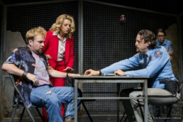 Le rapport à l’enfance y est archi présent, à la manière du fameux « le gendarme et le voleur ». Car THE LOOP c’est un bac à sable pour les comédiennes et les comédiens, une comédie réconfortante inspiré de l’univers des films policiers des années 90. Une langue directement inspirée « d’une bonne vieille VF » a même fini par se dégager. J’ai toujours été fasciné par la magie du théâtre, de voir des adultes qui se prêtent aux même jeux que l’on avait quand on était enfants et où on ne trichait pas. Dans mon travail je ne crois qu’au premier degré, ce fameux flegme à l’anglaise où on ne joue jamais la blague, c’est un théâtre de personnages bien marqués où la comédie naît de la force des dialogues et de l’aplomb de chaque protagoniste.
