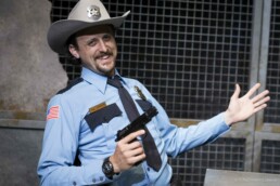 Stan faisait déjà parti de l’aventure NO LIMIT donc je connais déjà sa capacité à faire rire. C’est un roc, un vrai travailleur de fond, doté d’une énorme sensibilité. Il a cette sympathie immédiate dans la vie comme sur scène qui fait qu’on s’attache à lui très vite. Et puis disons le, il a une sacrée gueule ce qui le rend très crédible en vieux flic américain un peu roublard.