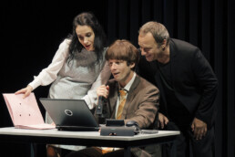 Bien servi pour quatre excellents acteurs et une scénographie contemporaine judicieuse, le public pénètre dans la sphère privée et découvre un personnage miroir grossissant de nos failles. Le spectacle rythmé, esthétique est mis en scène par Julie Cavanna. Jouant également, Benjamin Brenière à l’écriture s’est inspiré de la nouvelle de Dostoïevski. Avec au final une porte ouverte sur les versions, la pièce questionne sur la quête d’identité sociale, le manque de reconnaissance, l’amour nécessaire à la confiance.